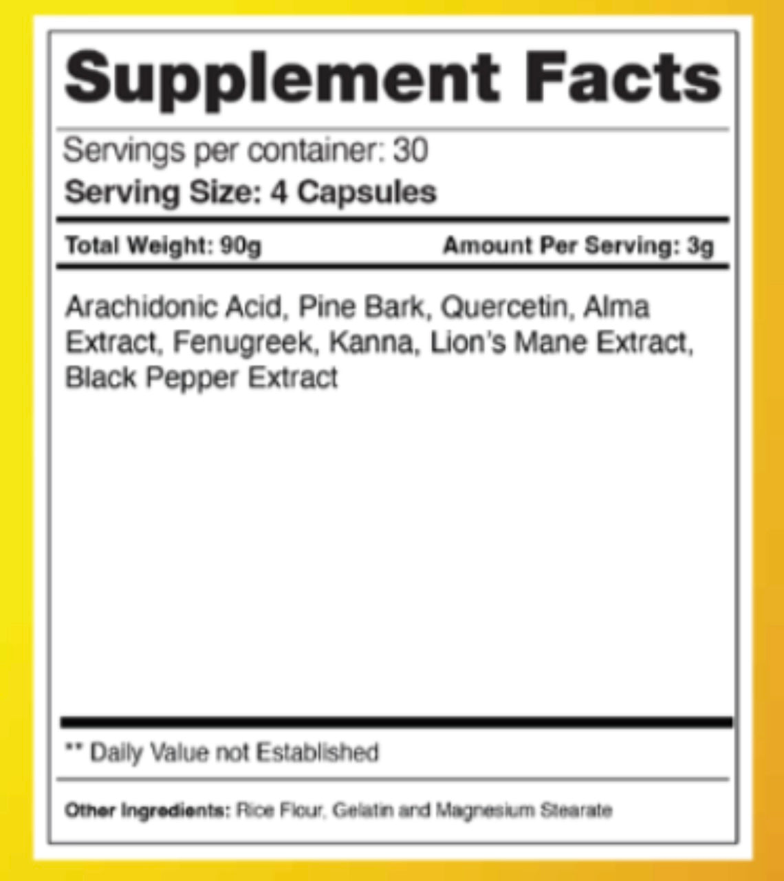 This skin-tearing pump product increases performance (Cordyceps), endurance, and promotes heart health (Pine Bark, Quercetin, Amla extract, Fenugreek). Black pepper extract increases absorption for better bioavailability. Lion's mane is a mushroom with numerous benefits such as increasing nerve cell recovery, reducing the risk of stomach ulcers, and reducing inflammation throughout the body.