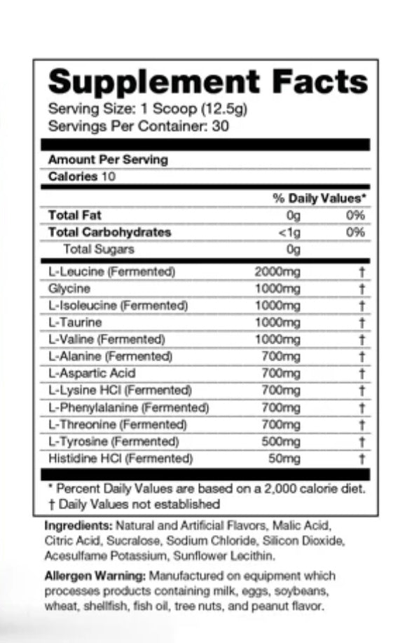 Features 6g Essential Aminos** including 4g BCAA’s per serving.