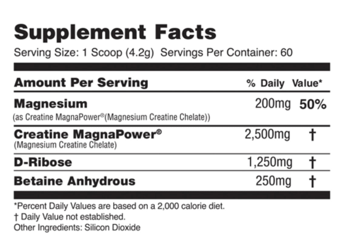 is the ultimate creatine transport system, formulated to achieve optimal assimilation into the muscle cell while eliminating the need to consume insulin spiking sugars. bioPOWER ATP utilizes Chelated Creatine, a patented process of molecularly bonding magnesium (transport mineral) to a pure creatine molecule. This results in the bypassing of cyclization (the process of creatine converting to creatinine, a non-usable waste product), creating much more absorption than other creatine. bioPOWER ATP’s synergistic inclusion of Ribose and Betaine takes strength gains to levels that far exceed any other product in its category.